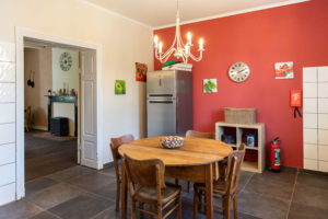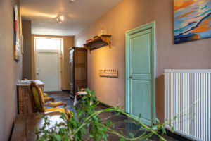 En poussant sa porte d’entrée vous verrez un large couloir de dix mètres sur deux séparant la maison en deux. Du côté droit se trouve deux vastes pièces, la cuisine et la salle à manger; du côté gauche, le salon et une chambre avec la salle de douche.