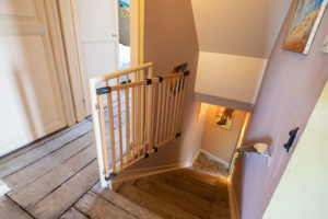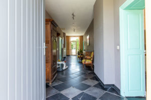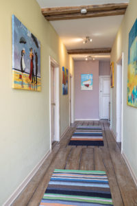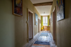 Allez venez on continue la visite, on va prendre l'escalier en bois massif qui mène à un grand couloir joliment décoré.