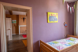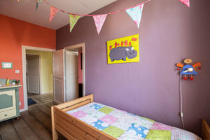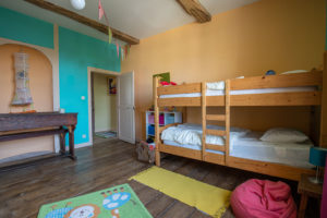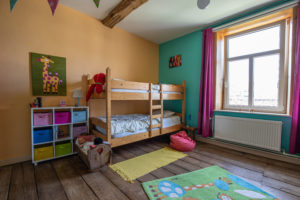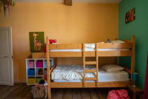 Juste en face la chambre des enfants comprenant un lit une personne, un lit superposé et de nombreux jouets.