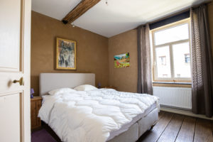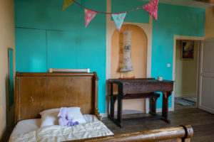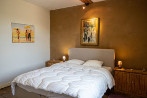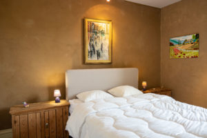 La chambre parentale, chaleureuse avec ses murs à la chaux et pleine de douceur avec son nouveau lit moelleux.